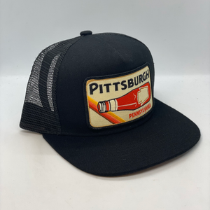 Shop the whole collection! All hats are hand-sewn to make a secret pocket behind the patch. A great way to carry your ID, Debit Card, Cash, Fishing License, Business Cards and more. All hats are trucker style with a mesh backing and an adjustable snapback. You can select a Flat Brim, or Low Profile style before adding to your cart!